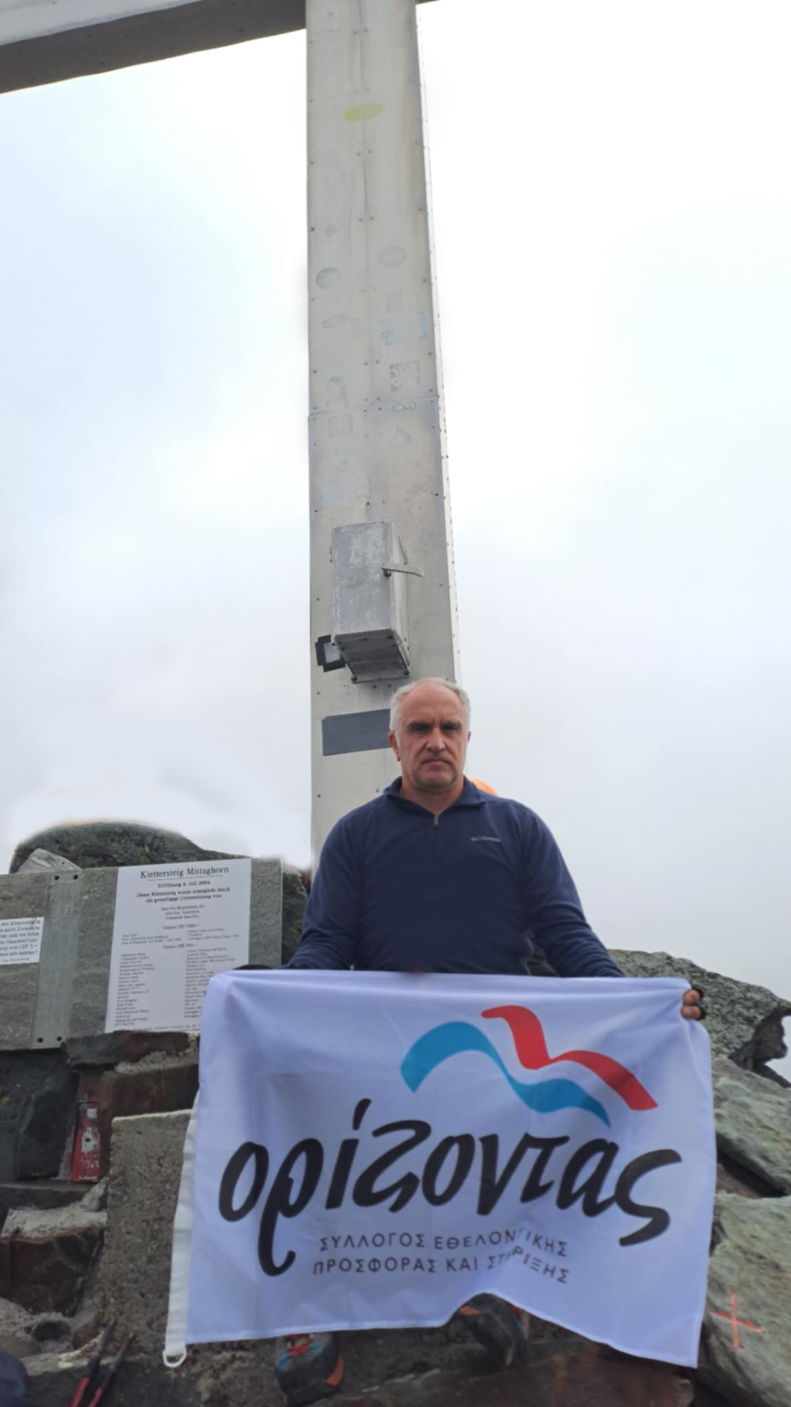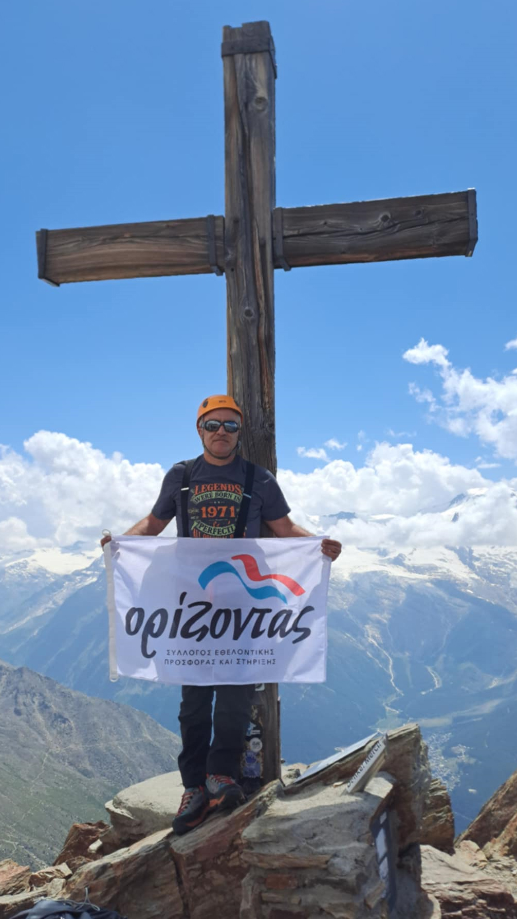 Ο Γιάννης Στεφανογιάννης «ανέβασε» την σημαία του “Ορίζοντα” στις Ελβετικές Άλπεις προβάλλοντας το έργο του Συλλόγου και στηρίζοντας τις οικογένειες παιδιών και ενηλίκων που πάσχουν από καρκίνο.