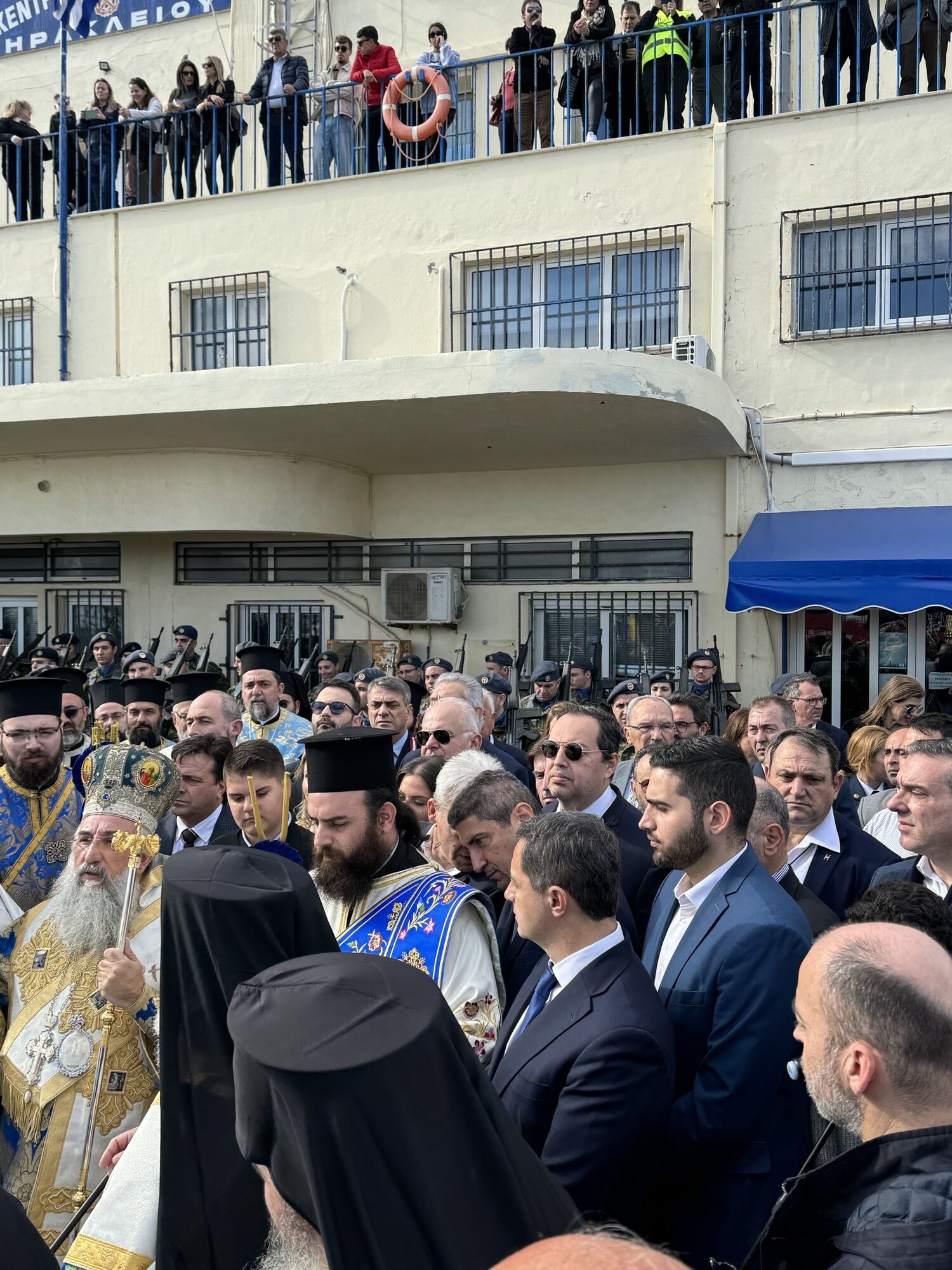 Στον Αγιασμό παρέστησαν ο Υπουργός Αγροτικής Ανάπτυξης κ. Λευτέρης Αυγενάκης, ο Υφυπουργός Ανάπτυξης κ. Μάξιμος Σενετάκης, ο Δήμαρχος Ηρακλείου κ. Αλέξης Καλοκαιρινός, εκπρόσωποι του Κοινοβουλίου, εκπρόσωποι της Τοπικής Αυτοδιοίκησης, των τοπικών αρχών, στελέχη του Ναυτικού, της Αστυνομίας και του Λιμενικού Σώματος, κληρικοί, εκπρόσωποι των σωμάτων ασφαλείας, εθελοντικών ομάδων και πολιτών.