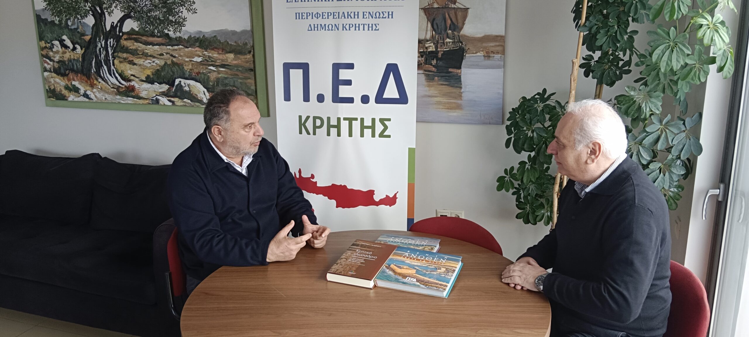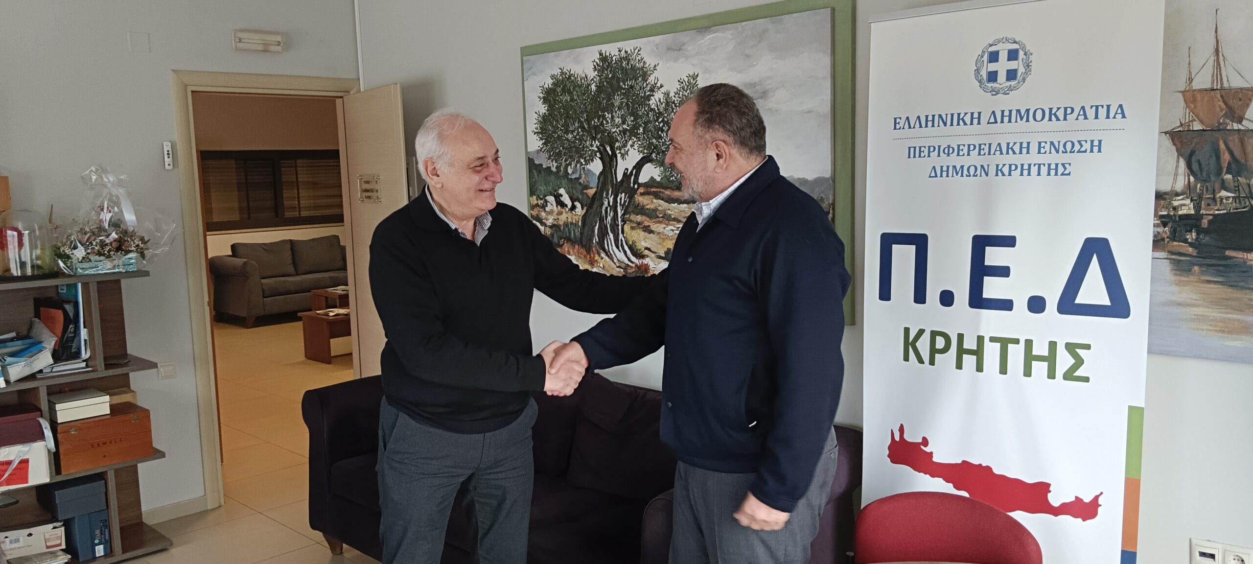 Συνεργασία στα γραφεία της Περιφερειακής Ένωσης Δήμων (Π.Ε.Δ.) Κρήτης είχε ο Προέδρος της Π.Ε.Δ. Κρήτης κ. Γιάννης Κουράκης με τον Δήμαρχο Βιάννου κ. Παύλο Μπταριτάκη.