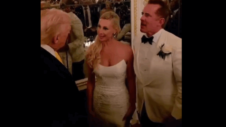 Ο Ντόναλντ Τραμπ επισκέφθηκε απροσδόκητα νιόπαντρους σε γάμο που λάμβανε χώρα στο θέρετρό του στο Μαρ-α-Λάγκο.