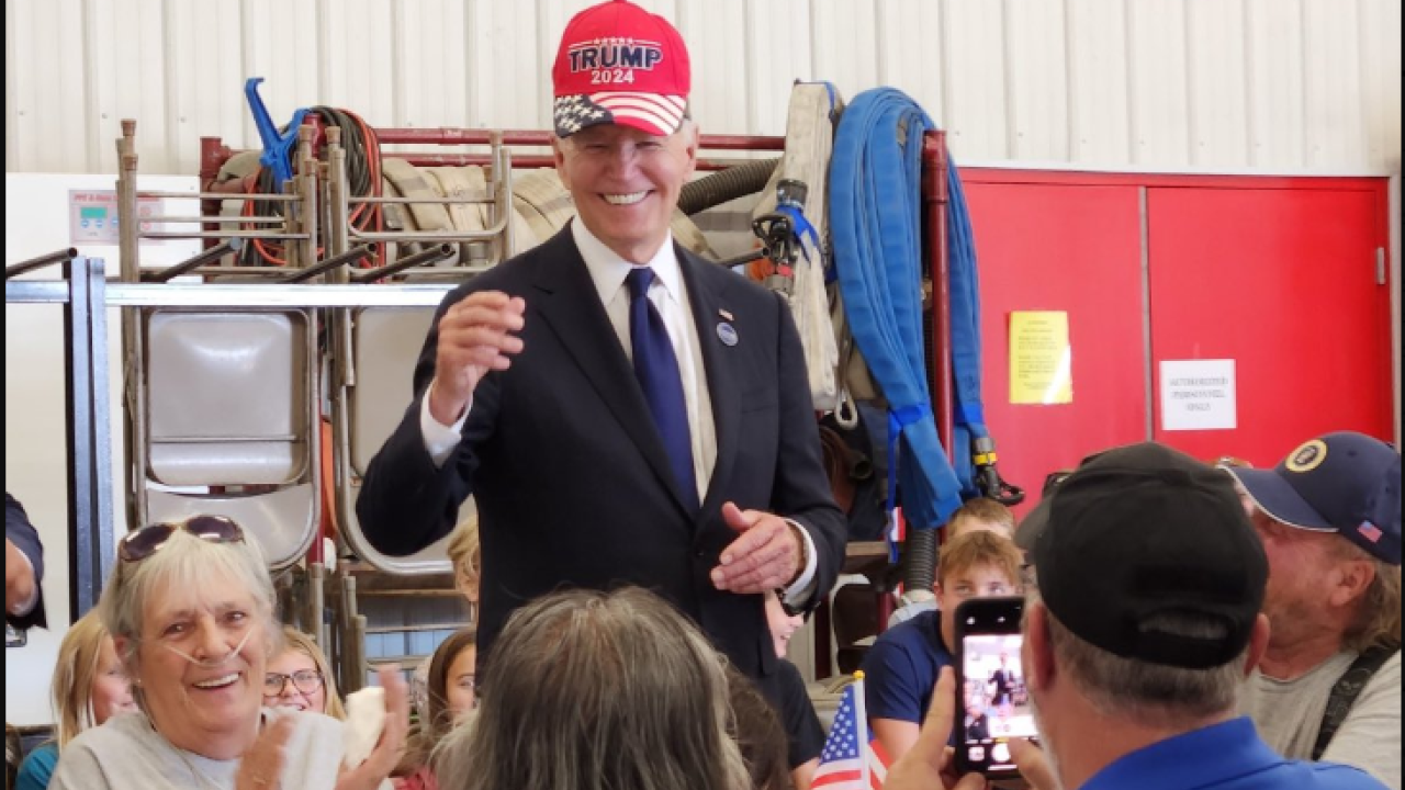Άναυδοι έμειναν οι υποστηρικτές του Τζο Μπάιντεν όταν τον είδαν να ποζάρει φορώντας ένα καπέλο με το σύνθημα «Trump 2024» και να χαμογελά. Η φωτογραφία κοινοποιήθηκε από τον λογαριασμό Trump War Room στο X με τη λεζάντα: «Ευχαριστώ για την υποστήριξη, Τζο».