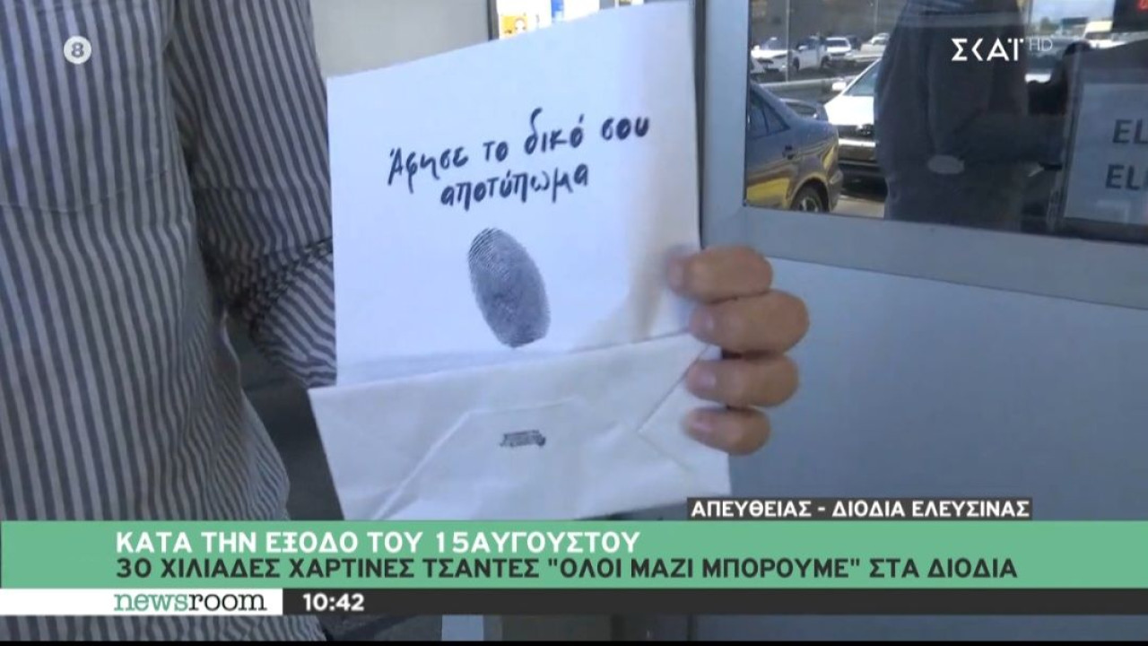Με κεντρικό μήνυμα «Άφησε Το Δικό Σου Αποτύπωμα», το «Όλοι Μαζί Μπορούμε» συνεχίζει την επιτυχημένη εκστρατεία του για το περιβάλλον και μοιράζει για ένα ακόμη καλοκαίρι 30.000 χάρτινες οικολογικές σακούλες στα διόδια, κατά την έξοδο του Δεκαπενταύγουστου.