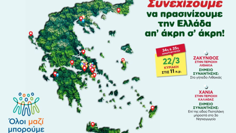Αυτήν την Κυριακή 22 Μαρτίου, έχουμε διπλή δενδροφύτευση σε Ζάκυνθο και Χανιά.