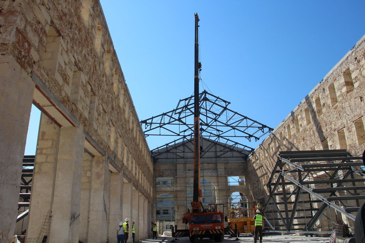 Σύμφωνα με τις εκτιμήσεις της Τεχνικής Υπηρεσίας του Δήμου Χανίων μέχρι τα Χριστούγεννα θα έχει ολοκληρωθεί η τοποθέτηση της στέγης μαζί με την επικεράμωσή της και θα προχωρήσουν οι οικοδομικές εργασίες, που έχουν να κάνουν με την αρχιτεκτονική των καταστημάτων.