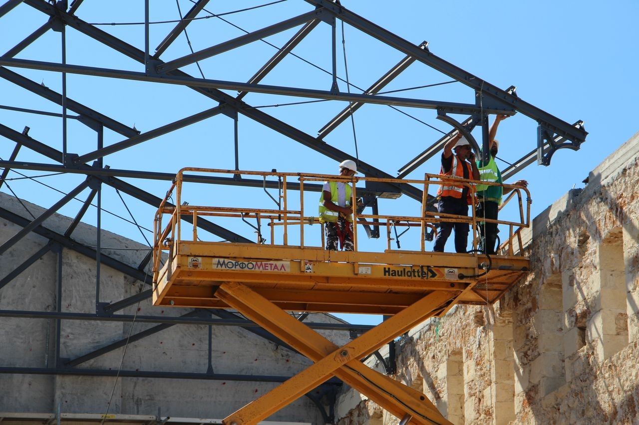 Σε εξέλιξη βρίσκεται η τοποθέτηση της οροφής στο νότιο (έμπροσθεν) τμήμα του εμβληματικού κτιρίου της Δημοτικής Αγοράς των Χανίων, καθώς από σήμερα, Πέμπτη 26 Σεπτεμβρίου 2024, ξεκίνησε η τοποθέτηση των τμημάτων στον άξονα νότος – βορράς. Κατά την τοποθέτηση των τμημάτων της στέγης παρόντες ήταν ο Δ/ντής της Τεχνικής Υπηρεσίας του Δήμου Χανίων, Γιώργος Ευθυμίου, καθώς και υπηρεσιακοί παράγοντες του Δήμου.