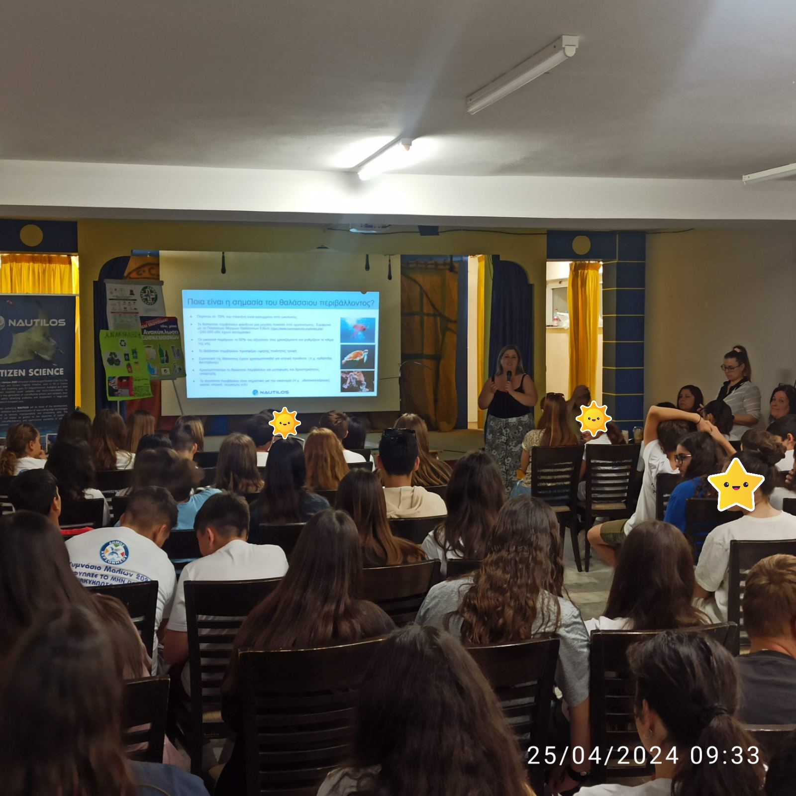 Το Ελληνικό Κέντρο Θαλασσίων Ερευνών (ΕΛ.ΚΕ.Θ.Ε.) συμμετείχε σε αυτήν την δράση που διοργανώθηκε από τον Δήμο Χερσονήσου στα πλαίσια του ευρωπαϊκού προγράμματος NAUTILOS για το οποίο πραγματοποιούνται δράσεις της Επιστήμης των Πολιτών – Citizen Science, με σκοπό την ευαισθητοποίηση και την προσφορά γνώσης στους μαθητές και στο ευρύ κοινό. Το επιστημονικό προσωπικό του ΕΛ.ΚΕ.Θ.Ε. πραγματοποίησε μία παρουσίαση στους μαθητές του Γυμνασίου Μαλίων στις 25 Απριλίου 2024, με σκοπό την ενημέρωση των μαθητών για τη ρύπανση των θαλασσών από τα πλαστικά και τα μικροπλαστικά. Το ευρωπαϊκό πρόγραμμα NAUTILOS (www.nautilos-h2020.eu) (αρ. επιχορήγησης 101000825) έχει σκοπό να δημιουργήσει μια νέα γενιά οικονομικά αποδοτικών αισθητήρων και δειγματοληπτών για τον προσδιορισμό σημαντικών παραμέτρων και ρυπαντών στην θάλασσα. Η μελέτη της ρύπανσης από τα πλαστικά και η ευαισθητοποίηση των πολιτών με διάφορες δράσεις αποτελεί ιδιαίτερο στόχο του έργου με σκοπό την ενίσχυση της Ευρωπαϊκής Στρατηγικής για τις Πλαστικές Ύλες σε μια Κυκλική Οικονομία (ESPCE). Το πρόγραμμα NAUTILOS έχει διάρκεια τέσσερα (4) χρόνια και αποτελείται από ένα μεγάλο εταιρικό σχήμα με 21 εταίρους από 11 Ευρωπαϊκές χώρες. Συντονιστής για την Ελλάδα είναι το Ελληνικό Κέντρο Θαλασσίων Ερευνών (ΕΛ.ΚΕ.Θ.Ε.) – Ινστιτούτο Θαλάσσιας Βιολογίας, Βιοτεχνολογίας και Υδατοκαλλιεργειών (Ι.ΘΑ.Β.Β.ΥΚ.) με Επιστημονική Υπεύθυνη την Δρ. Εύα Χατζηνικολάου