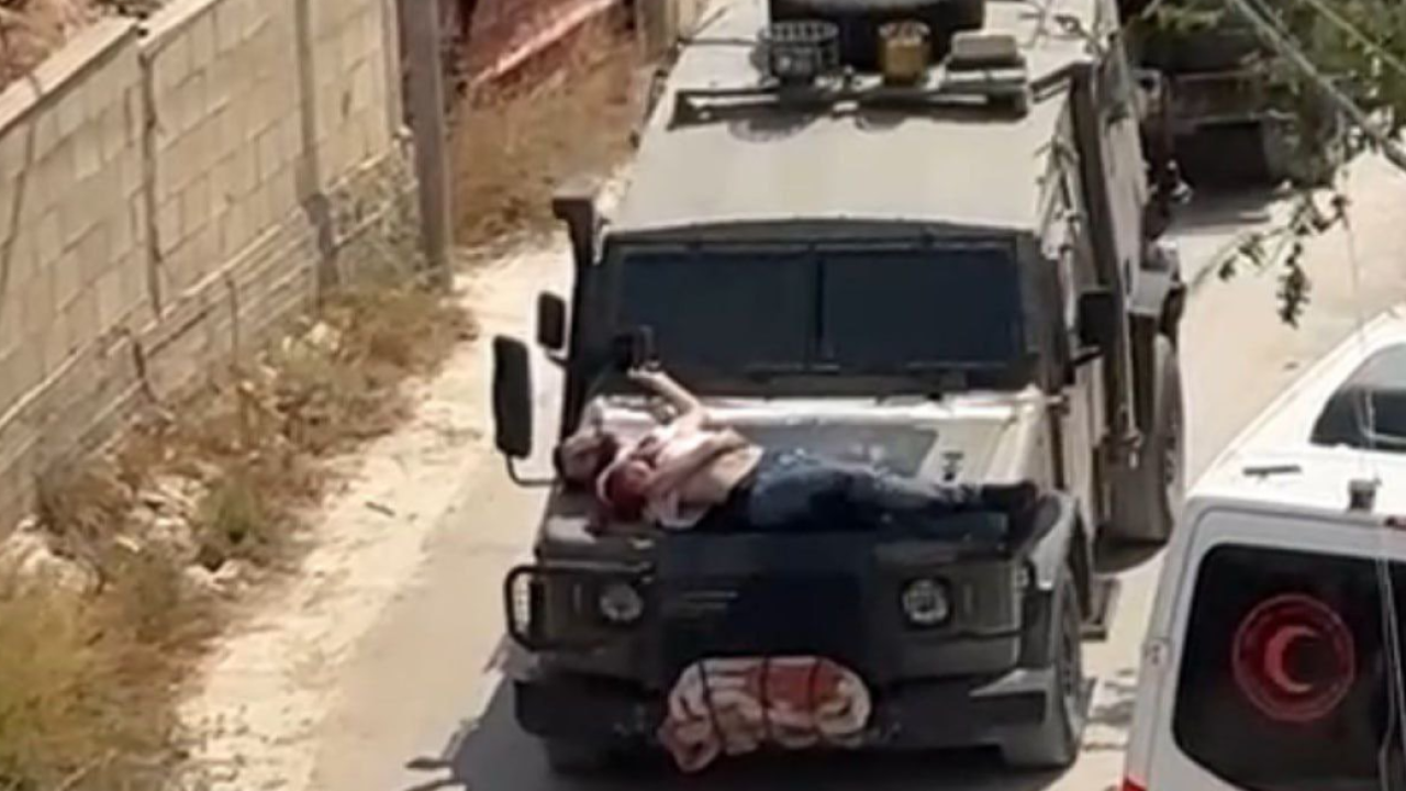 Ισραηλινοί στρατιώτες έδεσαν έναν τραυματισμένο Παλαιστίνιο στο καπό ενός στρατιωτικού οχήματος στη διάρκεια στρατιωτικής επιχείρησης στη Δυτική Όχθη.
