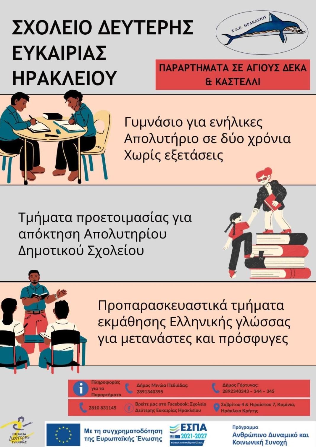 Το άρθρο “Ως τις 30 Σεπτεμβρίου οι εγγραφές στο Σχολείο Δεύτερης Ευκαιρίας στους Αγίους Δέκα“, δημοσιεύθηκε για πρώτη φορά στο CRETA24.