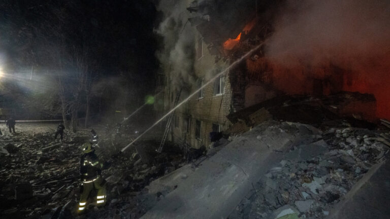 Russia just slammed a ballistic missile into a 5-story apartment building — one entire entrance reduced to rubble.