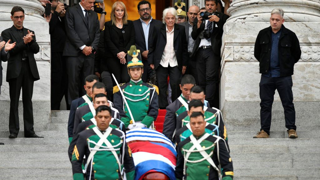 Έπειτα από τη νεκρική πομπή και την κηδεία προχθές, Τετάρτη, στο κέντρο της πρωτεύουσας Μοντεβιδέο, η αγρυπνία προς τιμήν του πρώην Προέδρου συνεχίσθηκε μέχρι χθες, Πέμπτη, το βράδυ σε αίθουσα του Νομοθετικού Μεγάρου, του κτιρίου που στεγάζει το κοινοβούλιο.