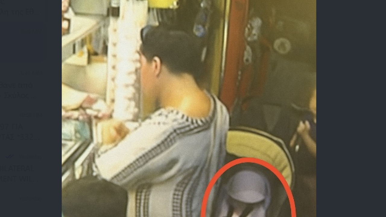 Μια ακόμη φωτογραφία από κάμερα στις 9 το βράδυ του Σαββάτου δείχνει την ίδια γυναίκα με το ασπρόμαυρο φόρεμα να είναι σταματημένη σε περίπτερο και δίπλα της να βρίσκεται το καρότσι με το παιδί.