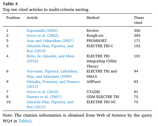 Το άρθρο των Καθηγητών του Πολυτεχνείου Κρήτης Κωνσταντίνου Ζοπουνίδη και Μιχάλη Δούμπου: «Zopounidis, C. , Doumpos, M. (2002) Multicriteria classification and sorting methods: A literature review, European Journal of Operational Research, 138 (2), 229-246», αναφέρθηκε ως πρώτο στα δέκα καλύτερα από άποψη βιβλιογραφικών ετεροαναφορών.