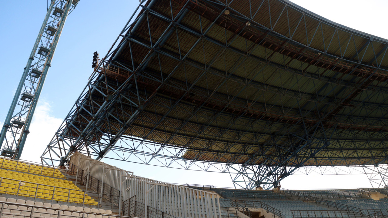 Ολοκληρώθηκαν οι εργασίες απομάκρυνσης των προβληματικών τμημάτων του ανατολικού στεγάστρου του Παγκρητίου Σταδίου, που είχε υποστεί ζημιές από την πρόσφατη κακοκαιρία.