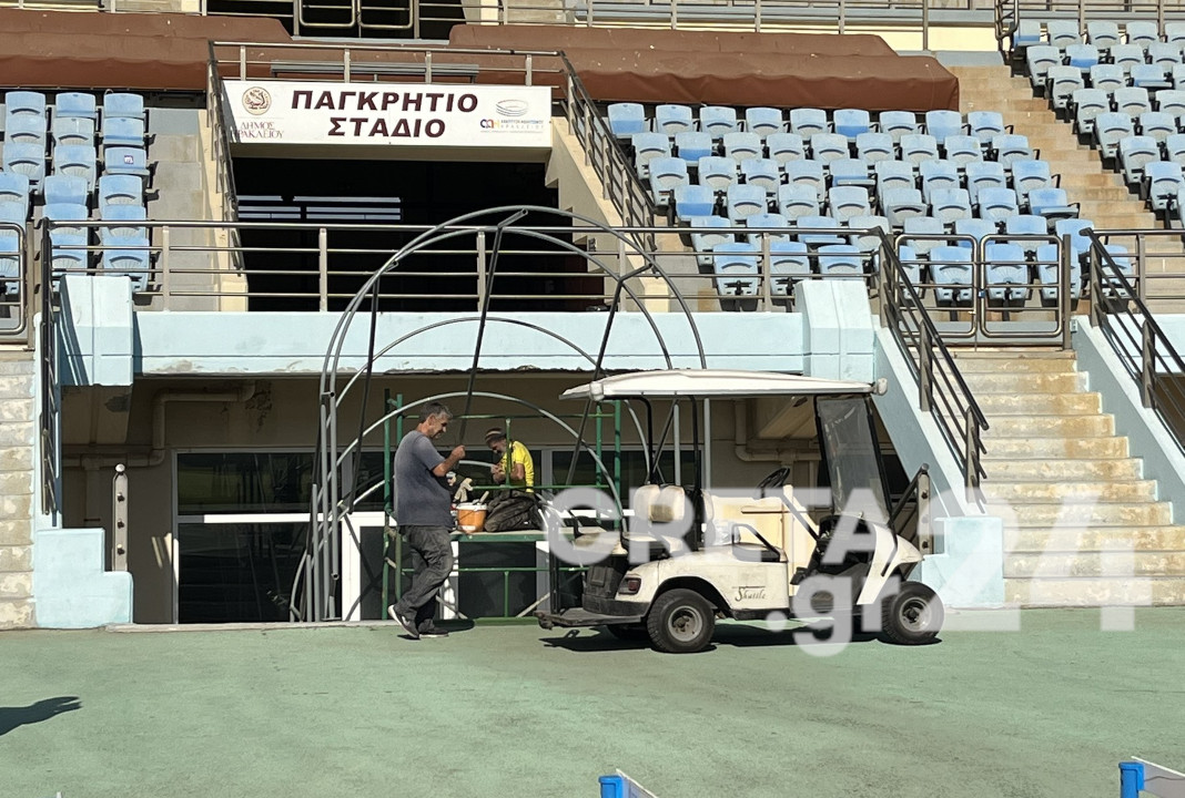 Ξεκίνησαν το πρωί της Παρασκευής οι εργασίες απομάκρυνσης του ανατολικού στεγάστρου του Παγκρητίου Σταδίου.