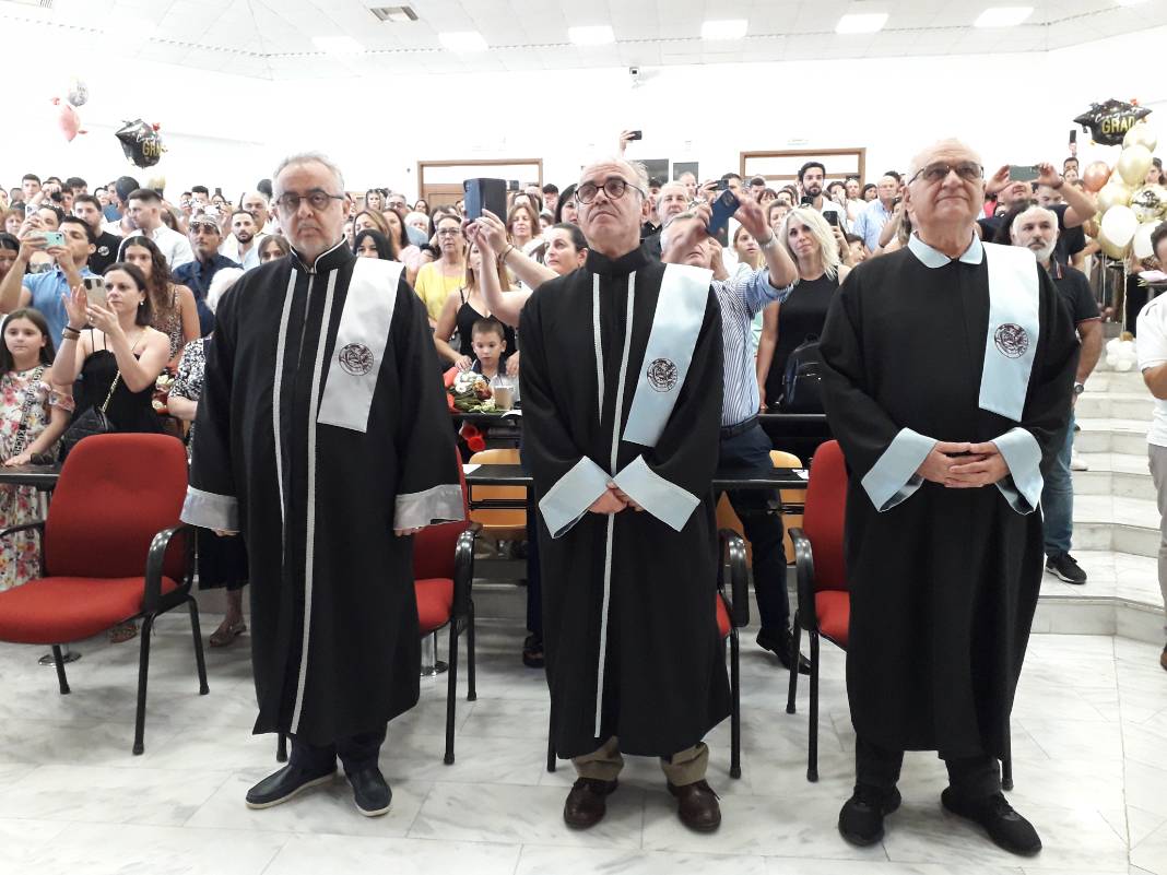 Στην τελετή παρευρέθηκαν Μέλη ΔΕΠ γονείς συγγενείς και φίλοι των πτυχιούχων φοιτητών σε ασφυκτικά γεμάτες αίθουσες.