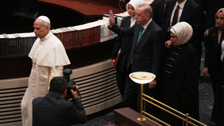 Ο πάπας Λέων Γ’ κάλεσε την Τουρκία «να γίνει παράγοντας σταθερότητας και προσέγγισης ανάμεσα στους λαούς» εφιστώντας την προσοχή κατά της «ομογενοποίησής» της, κατά τη διάρκεια της συνάντησής του με τον τούρκο πρόεδρο Ταγίπ Ερντογάν στην Αγκυρα.