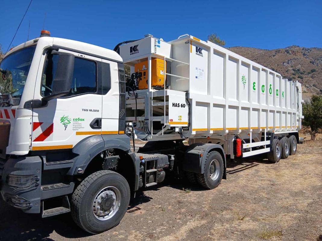 Παραλήφθηκε από τον Δήμο Βιάννου ο μηχανολογικός εξοπλισμός που αποτελείται από ένα ελκυστήρα (τράκτορα) και ένα ειδικό containers συμπίεσης και μεταφόρτωσης των απορριμμάτων που είναι σχεδιασμένο για ασφαλή και αποτελεσματική αποθήκευση και μεταφορά.