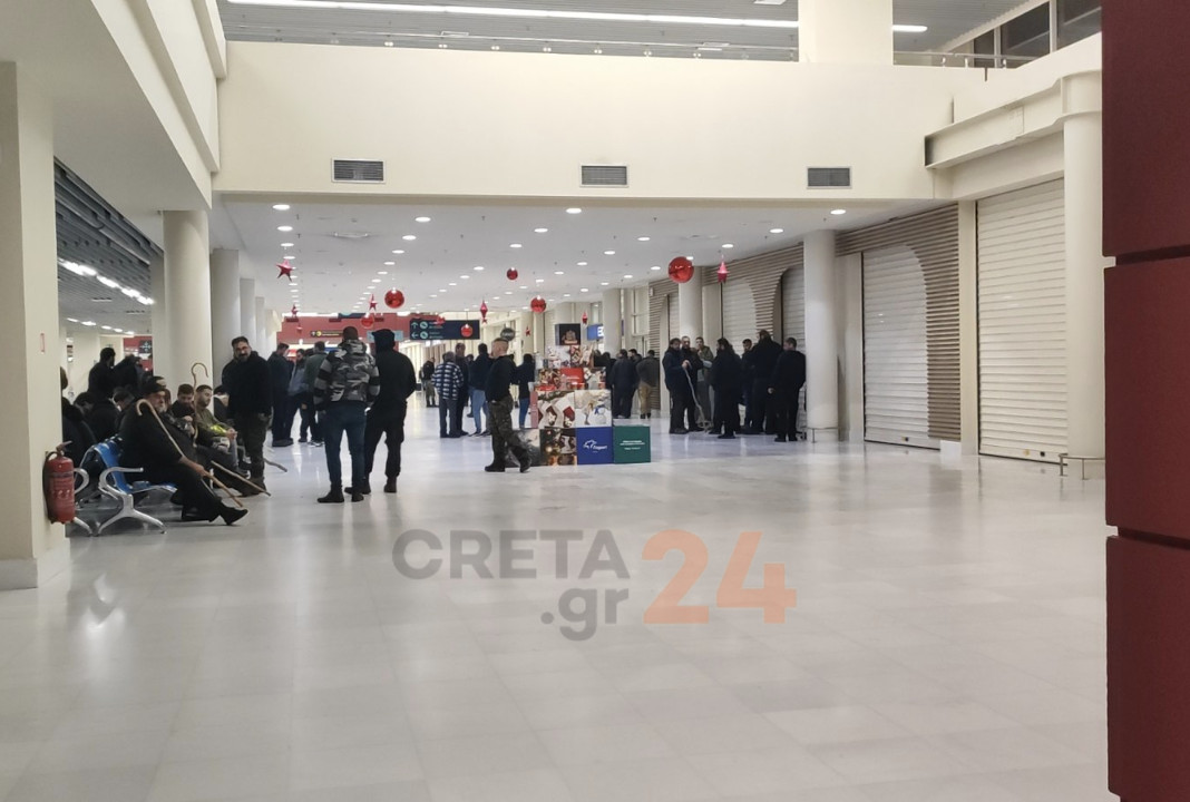 Το μεσημέρι της Δευτέρας, στο αεροδρόμιο «Ιωάννης Δασκαλογιάννης» έφτασαν πεζοί οι αγροτοκτηνοτρόφοι στα Χανιά, μετά τα επεισόδια που σημειώθηκαν στην Ε.Ο. Αεροδρομίου Σούδας, όπου οι αστυνομικοί είχαν αποκλείσει τον δρόμο.