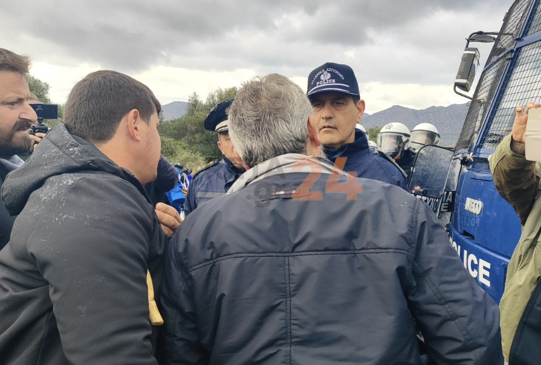 Η λεκτική ένταση «ξέφυγε» με τους παραγωγούς να επιχειρούν να σπάσουν τον αστυνομικό κλοιό και τους αστυνομικούς να απαντούν με χημικά και κρότου λάμψης.