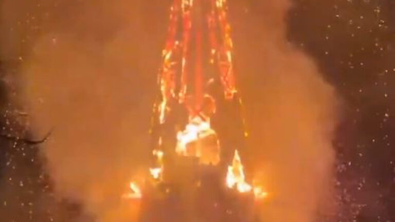 Τα τοπικά μέσα ενημέρωσης αναφέρουν ότι εικάζεται πως η φωτιά προκλήθηκε από πυροτεχνήματα.
