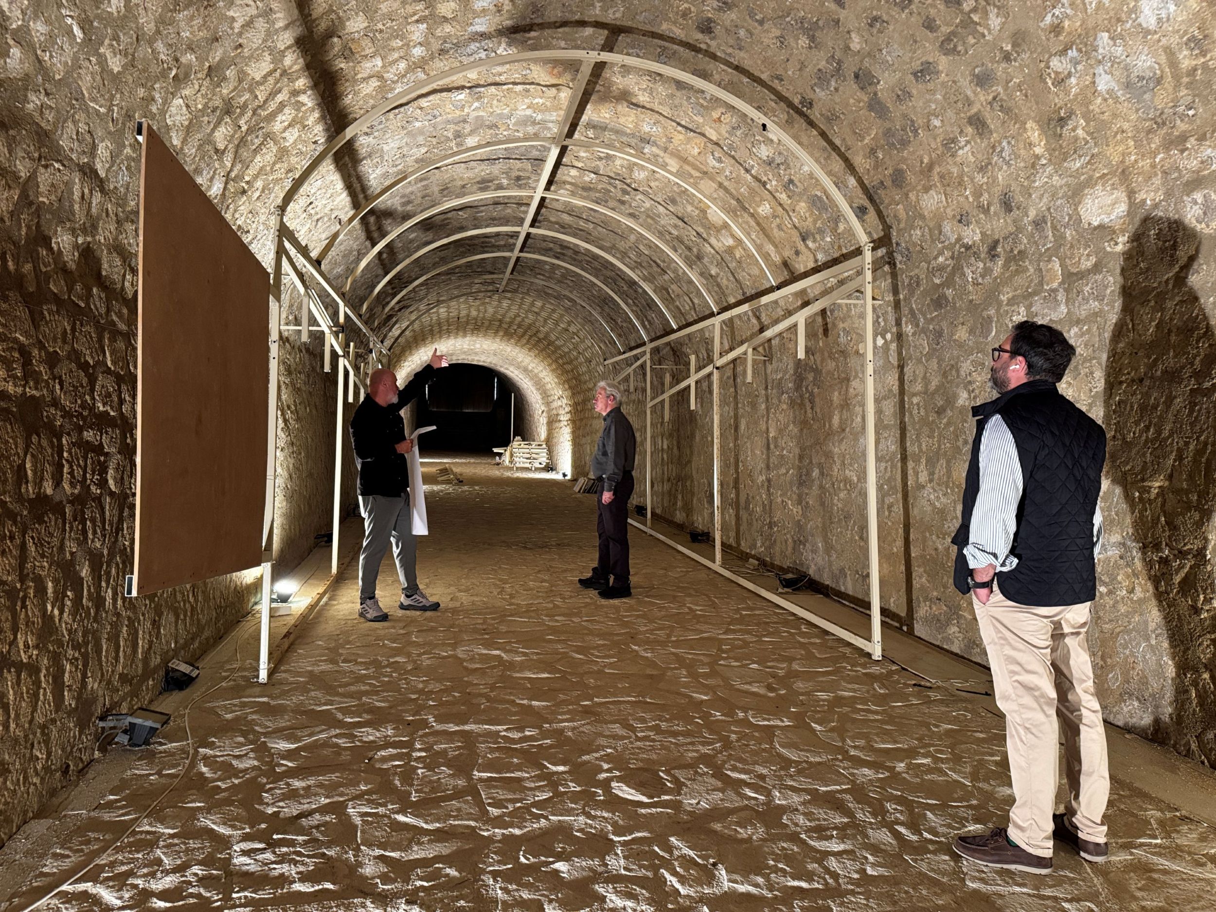Ειδικότερα, ο Αλέξης Καλοκαιρινός και οι συνεργάτες του είδαν από κοντά τις εργασίες διαμόρφωσης για την Μόνιμη Έκθεσης Ενθυμημάτων Εθνικής Αντίστασης που βρίσκονται σε εξέλιξη στη στοά Μακάσι, μέσω της οποίας ο επισκέπτης θα μπορεί να βρεθεί από την Λ. Πλαστήρα στην τάφρο των Τειχών, στο σημείο μεταξύ της Υπηρεσίας Πρασίνου και της παιδικής χαράς.