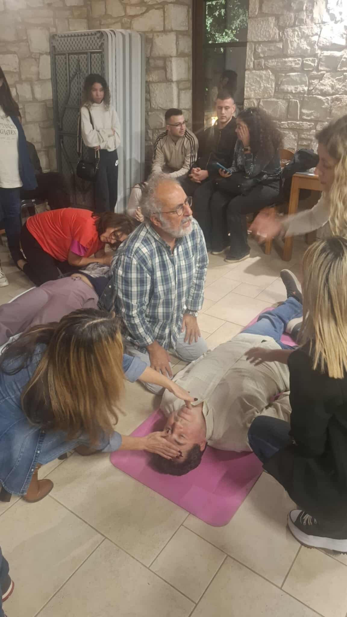 Ακολούθησε πρακτική άσκηση των συμμετεχόντων σε ρεαλιστικά σενάρια ΚΑΡΠΑ, θέσης ανάνηψης και χρήσης απινιδωτή, για την ανάπτυξη των σχετικών δεξιοτήτων στο κοινό. Η συμμετοχή ήταν ιδιαίτερα μεγάλη, με ενεργό εμπλοκή από όλους τους παρευρισκόμενους.