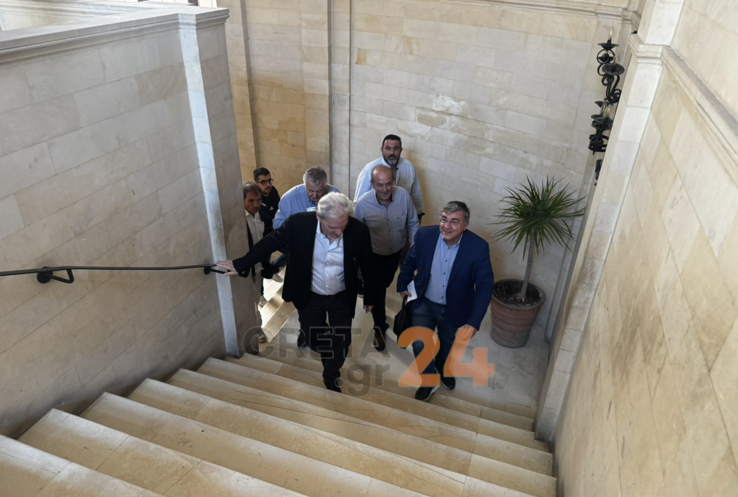 Η σύσκεψη πραγματοποιείται στη Λότζια με επίκεντρο την πρόθεση της κυβέρνησης να δημιουργηθεί στην Κρήτη μια μονάδα καύσης απορριμμάτων.