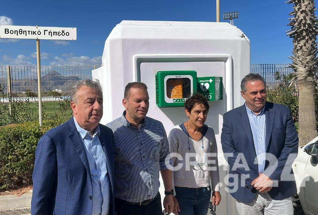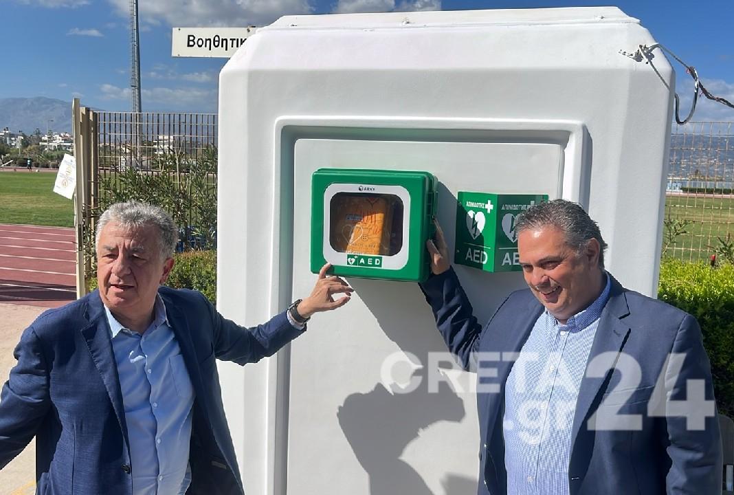 Στο πλαίσιο του προγράμματος «ΖΩΗ», που υλοποιεί η Περιφέρεια Κρήτης, παρουσίαση της λειτουργίας των εξωτερικών απινιδωτών, που τοποθετούνται ήδη σε πολυσύχναστα σημεία και σε αθλητικούς χώρους σε όλη την Κρήτη, πραγματοποιήθηκε σήμερα σε ειδική εκδήλωση στο Παγκρήτιο Στάδιο.