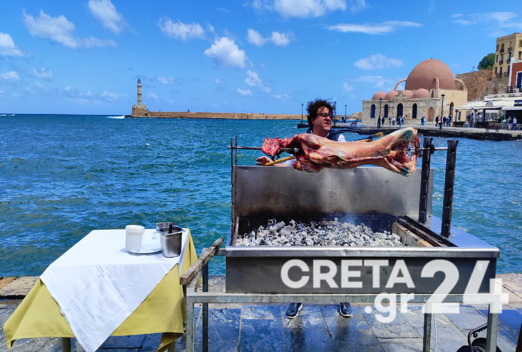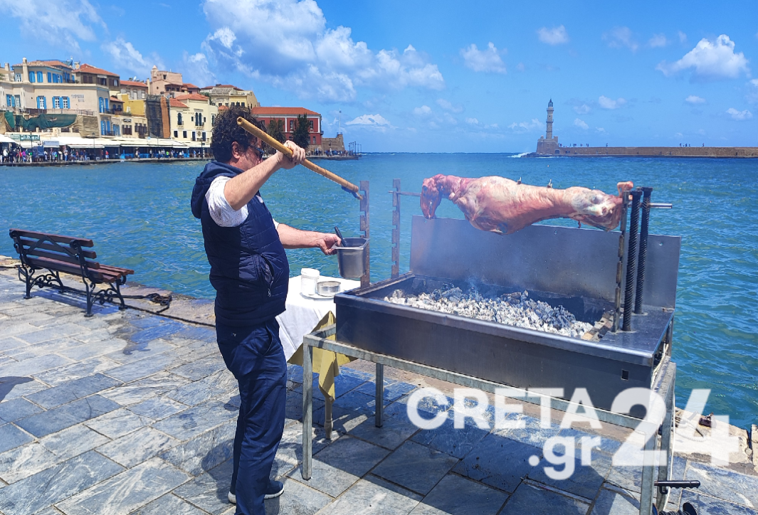 Στα Χανιά, παρά τον άστατο καιρό, ο οποίος από το μεσημέρι βελτιώθηκε αισθητά, οι ταβέρνες στο Ενετικό Λιμάνι από νωρίς το πρωί έστησαν τις σούβλες, τηρώντας το έθιμο.