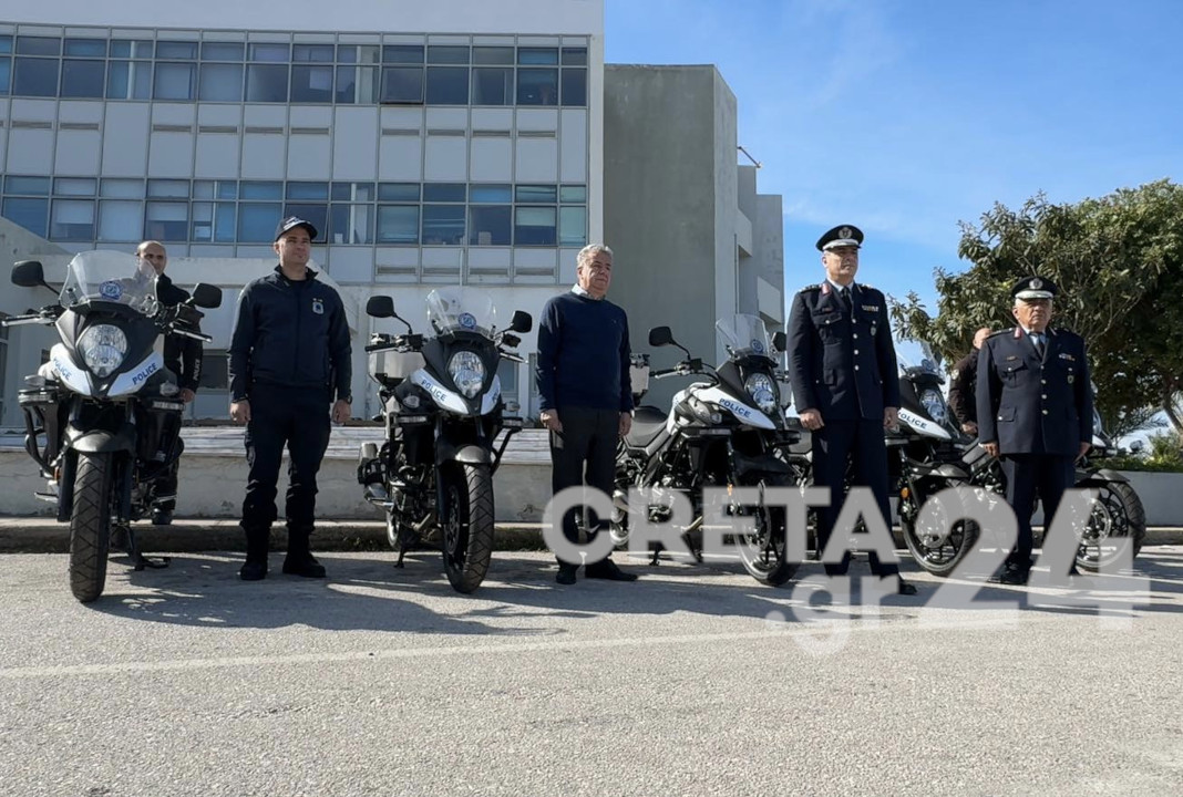 Η Διεύθυνση Αστυνομίας Ηρακλείου παρέλαβε ως δωρεά από την Περιφέρεια Κρήτης, πέντε δίκυκλες μοτοσυκλέτες. Τα οχήματα αυτά πρόκειται να προστεθούν στο στόλο της Διεύθυνσης Αστυνομίας Ηρακλείου με στόχο την περαιτέρω ενίσχυση της επιχειρησιακής ετοιμότητας και ανταπόκρισης των δικυκλιστών αστυνομικών στην πόλη του Ηρακλείου.