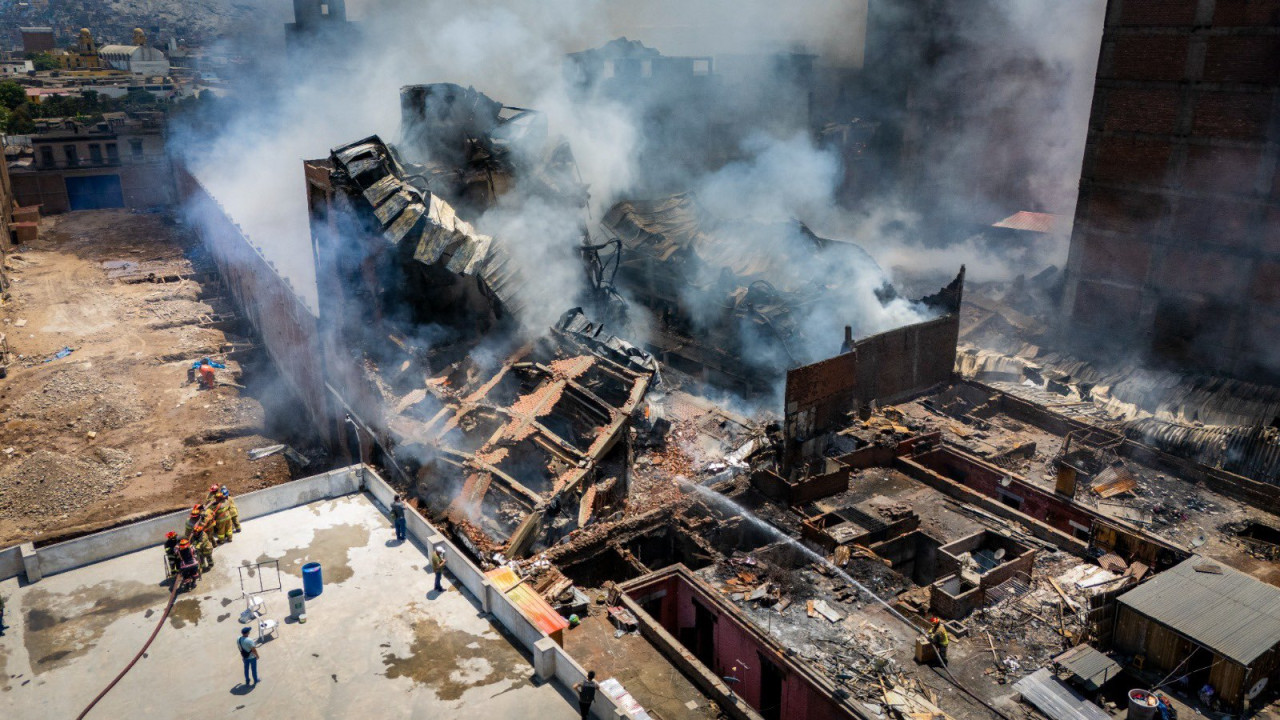 Después de más de 48 horas, el incendio en el Cercado de Lima, Perú, sigue fuera de control. Al menos dos edificios se han derrumbado y otro presenta daños estructurales. #Lima #Incendio