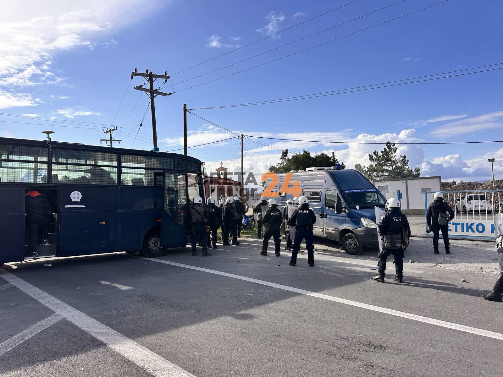 Οι διαμαρτυρόμενοι πετούν, πέτρες, ξύλα και αντικείμενα στα οχήματα των αστυνομικών.