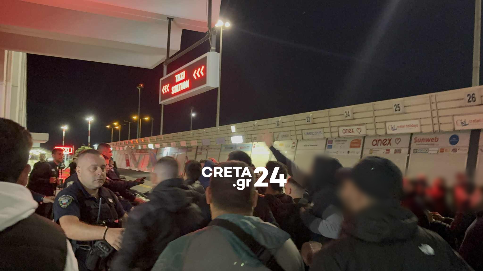 Λίγο μετά τις 12.30 το βράδυ αφίχθη η αποστολή του ΟΦΗ στο αεροδρόμιο του Ηρακλείου, εκεί όπου περισσότεροι από 100 οπαδοί της ομάδας, περίμεναν την αποστολή.
