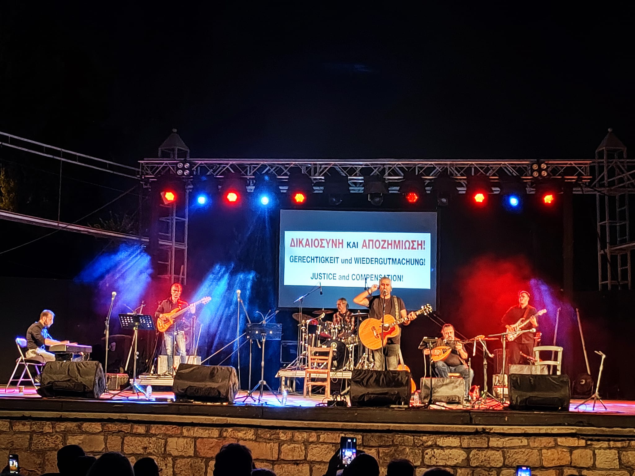 Άνθρωποι κάθε ηλικίας από τα καμένα χωριά της Βιάννου, της Ιεράπετρας, τα Ανώγεια, τον Σοκαρά, τη Δαμάστα και πολλά ακόμη μαρτυρικά χωριά της Κρήτης, απόλαυσαν τη συναυλία Μνήμης και Δικαιοσύνης και τα τραγούδια που ερμήνευσαν: ο Βασίλης Λέκκας, ο Γιώργος Ξυλούρης, ο Μάνος Παπαδάκης και η Νατάσσα Παπαδοπούλου – Τζαβέλλα.