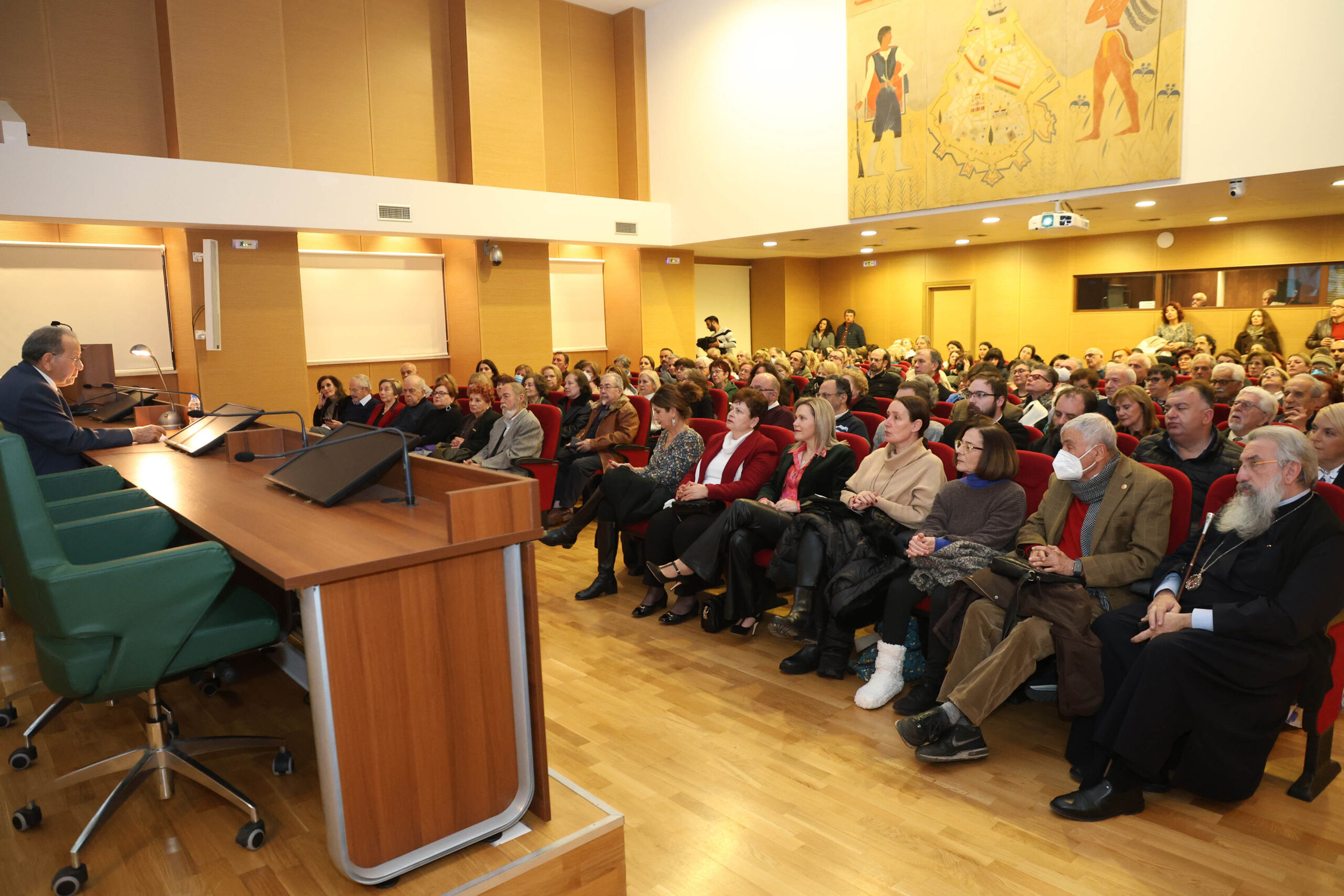 Στη διάλεξη παραβρέθηκαν ο Σεβασμιότατος Αρχιεπίσκοπος Κρήτη κ.κ Ευγένιος, η Αντιπεριφερειάρχης Πολιτισμού και Ισότητας κ. Γεωργία Μηλάκη, η Αντιδήμαρχος Εθελοντισμού κ. Φιλαρέτη Χρονάκη, ο Αντιδήμαρχος Κοινωνικής Μέριμνας κ. Γιώργος Τσαγκαράκης και ο πρόεδρος της ΔΕΠΑΝΑΛ κ. Κώστας Βαρβεράκης.