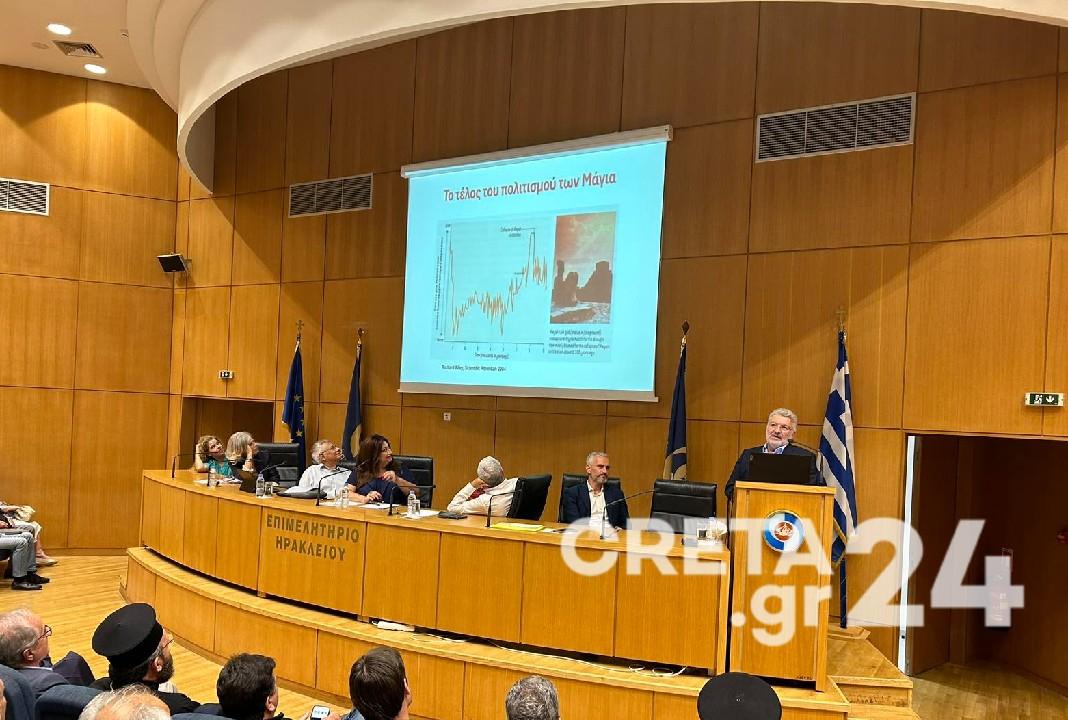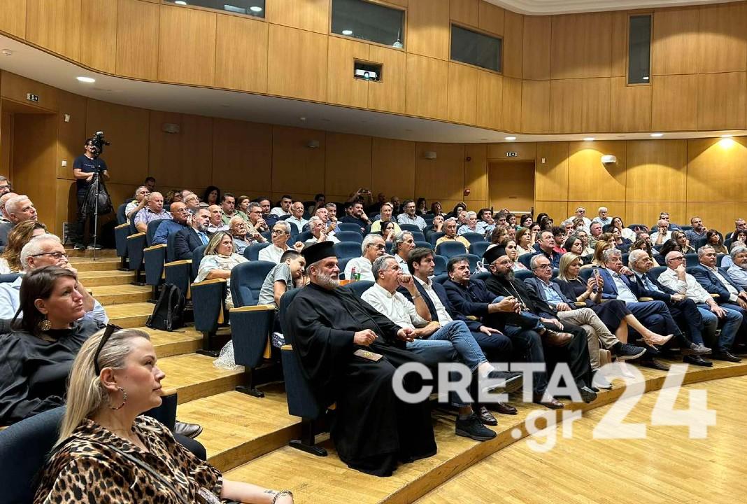 Στην κατάμεστη από κόσμο αίθουσα Καστελλάκη του Επιμελητηρίου Ηρακλείου πραγματοποιείται η εσπερίδα με επίκεντρο την κλιματική αλλαγή, τις συνέπειες που έχει αλλά και τις προκλήσεις που υπάρχουν για την Κρήτη.