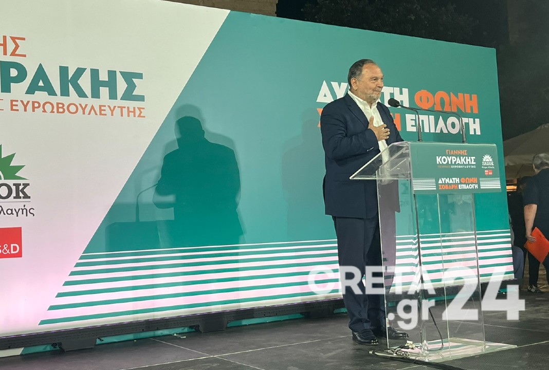 Ο Γιάννης Κουράκης κατά τη διάρκεια της ομιλίας του αναφέρθηκε στους στόχους του ΠΑΣΟΚ για την Ευρώπη των πέντε επόμενων ετών και κάλεσε τους πολίτες να προσέλθουν στην κάλπη των ευρωεκλογών της 9ης Ιουνίου.