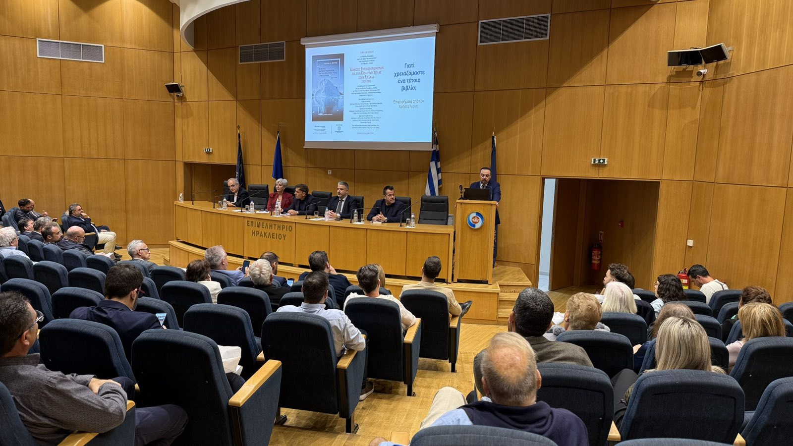 Παρουσία πλήθους κόσμου και εκπροσώπων τοπικών φορέων, πραγματοποιήθηκε το απόγευμα της Παρασκευής 31/10, στην Αίθουσα «Καστελλάκη» του Επιμελητηρίου Ηρακλείου, το βιβλίο του Γαβριήλ Κουρή με τίτλο: «Εκθέσεις Εμπειρογνωμόνων για την Πολιτική Υγείας στην Ελλάδα: 1920-2000», που κυκλοφορεί από τις Εκδόσεις Παπαζήση.