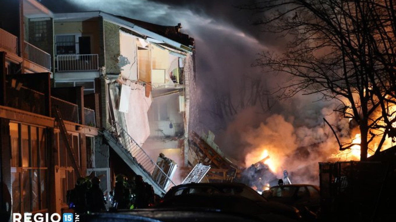Όροφοι της πολυκατοικίας φαίνεται να έχουν καταστραφεί από την έκρηξη, σύμφωνα με το Regio15.