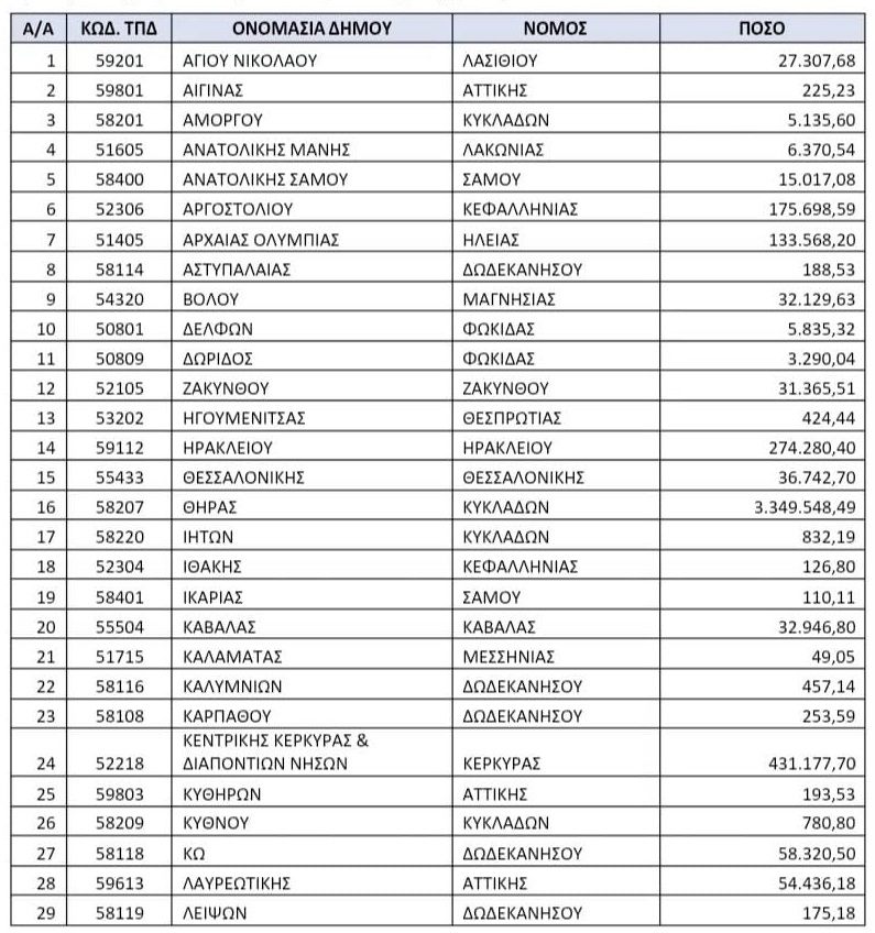 Αναλυτικά τα ποσά ανά δήμο: