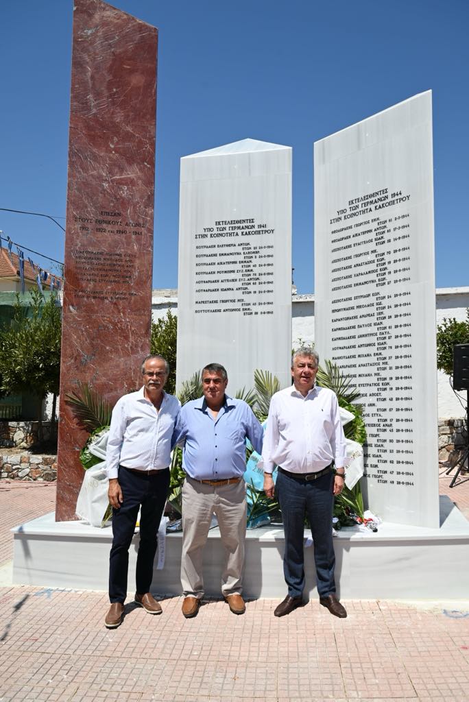 Στην εκδήλωση παραβρέθηκε και ο Περιφερειάρχης Κρήτης, κ. Σταύρος Αρναουτάκης, ο οποίος τόνισε στον χαιρετισμό του: “Οκτώ δεκαετίες μετά, ο μαρτυρικός Κακόπετρος διδάσκει και παραδειγματίζει. Μπροστά στο μνημείο που αποκαλύψαμε σήμερα εδραιώνεται η ενότητα και η ομοψυχία που πρέπει να διατηρηθεί με την πίστη στο συλλογικό που υπερβαίνει το ατομικό..”. Χαιρετισμό επίσης απηύθυνε ο Βουλευτής Χανίων κ. Αλέξανδρος Μαρκογιαννάκης, ο οποίος αναφέρθηκε στην αξία των εκδηλώσεων τιμής στη μνήμη όσων θυσιάστηκαν για την ελευθερία του τόπου μας.