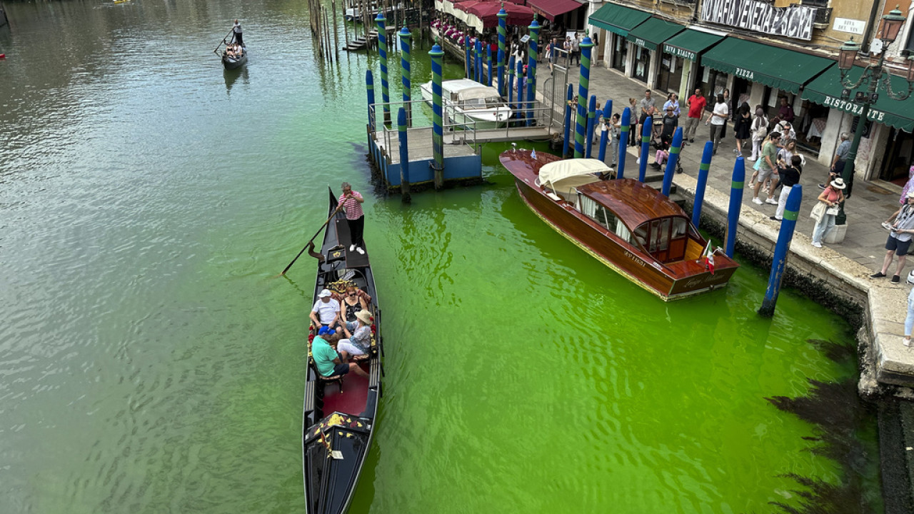 Οι φερόμενοι ως υπεύθυνοι, σύμφωνα με πληροφορίες έριξαν την ουσία που χρωμάτισε τα νερά της βενετσιάνικης λιμνοθάλασσας, μέσα από πλωτό, δημοτικό λεωφορείο.