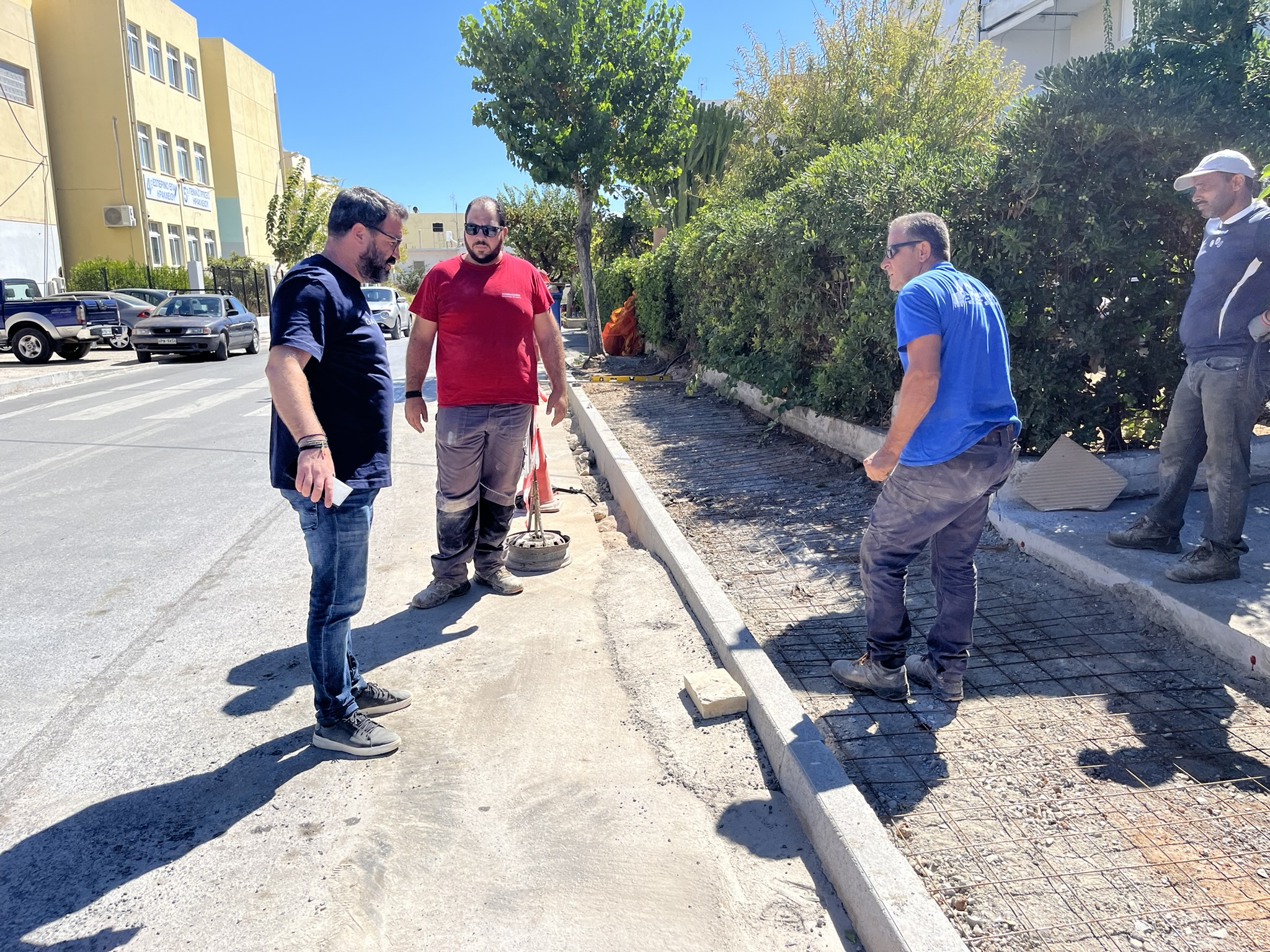 Ο Αντιδήμαρχος Τεχνικών Έργων Γιώργος Σισαμάκης προχώρησε σε αυτοψία των εργασιών κατασκευής πεζοδρομίων που βρίσκονται κοντά στην ολοκλήρωση τους, στις συμβολές των οδών Διονυσίου Φραγκιαδάκη και Μιχαήλ Αρχαγγέλου, Μιχαήλ Αρχαγγέλου και Λεβήνου, καθώς και στη συμβολή των οδών Λευτέρη Σκεπετζή και Φιλελλήνων.