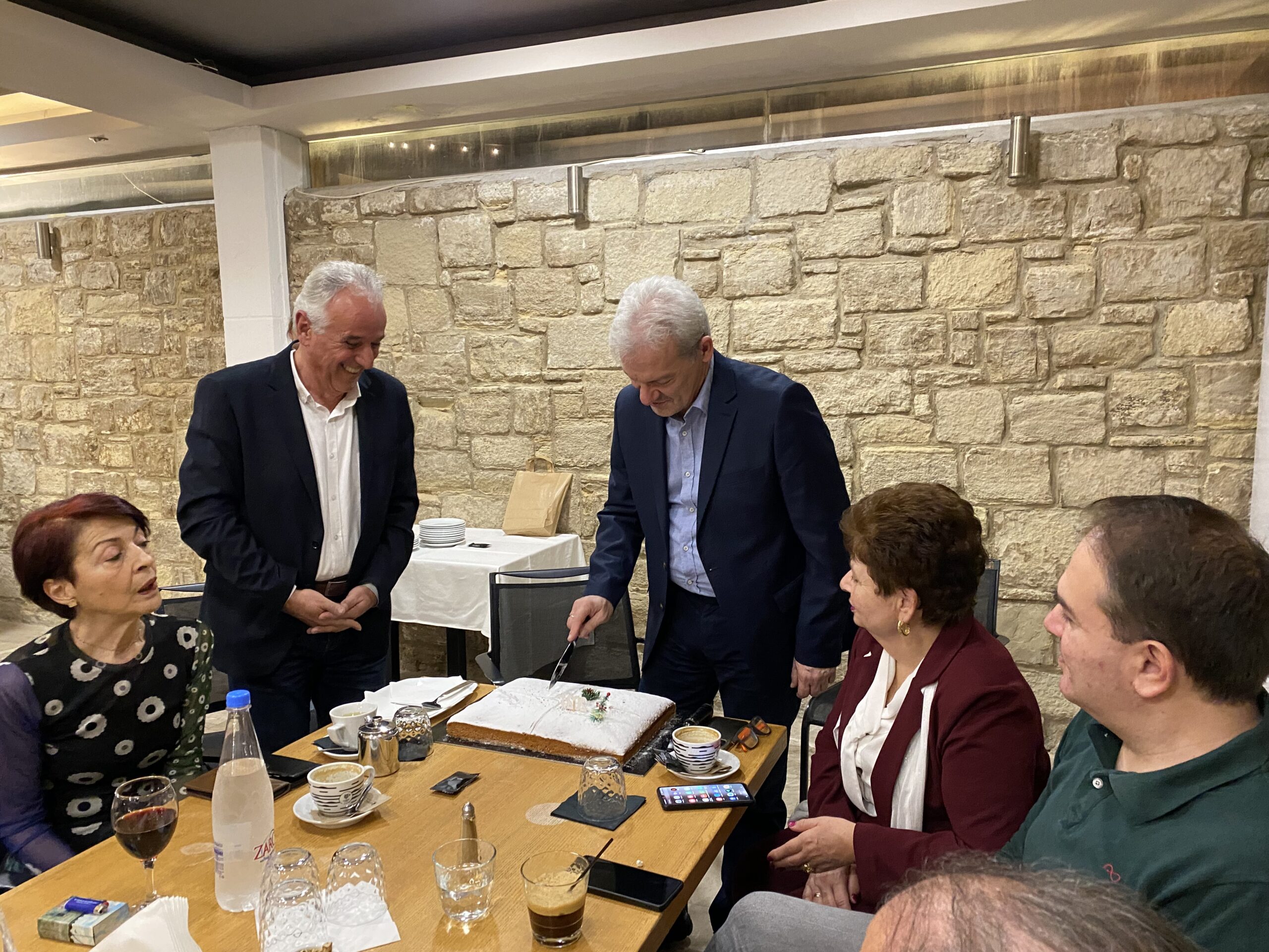 Το απόγευμα της Κυριακής 25/2, οι εθελοντές καθηγητές, -τριες του Κοινωνικού Φροντιστηρίου του Δήμου Ηρακλείου έκοψαν την πίτα τους, παρουσία του Δημάρχου Αλέξη Καλοκαιρινού, των Αντιδημάρχων Παιδείας Αντώνη Περισυνάκη και Εθελοντισμού Φιλαρέτης Δαφέρμου Χρονάκη και της συντονίστριας Μελπομένης Περιστέρη στο καφέ «Μαρίνα».
