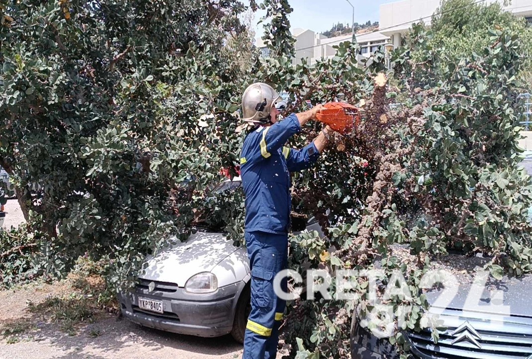 Σοβαρές υλικές ζημιές προκλήθηκαν σε σταθμευμένα αυτοκίνητα στον Βλητέ στα Χανιά, όταν δέντρο «κατέρρευσε» πάνω σε αυτά, εξαιτίας των θυελλωδών ανέμων.