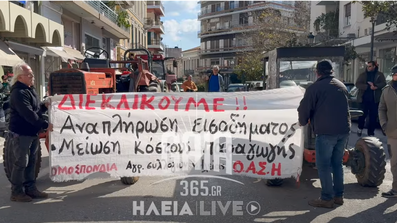 Όπως απεικονίζεται και στο βίντεο των ilialive.gr – gaia365.gr, διαλαλώντας τα αιτήματά τους κατέληξαν με τα τρακτέρ στο κέντρο του Πύργου, όπου σταμάτησαν και «άνοιξαν» το πανό με τα συνθήματα: «Αναπλήρωση εισοδήματος, μείωση κόστους παραγωγής».