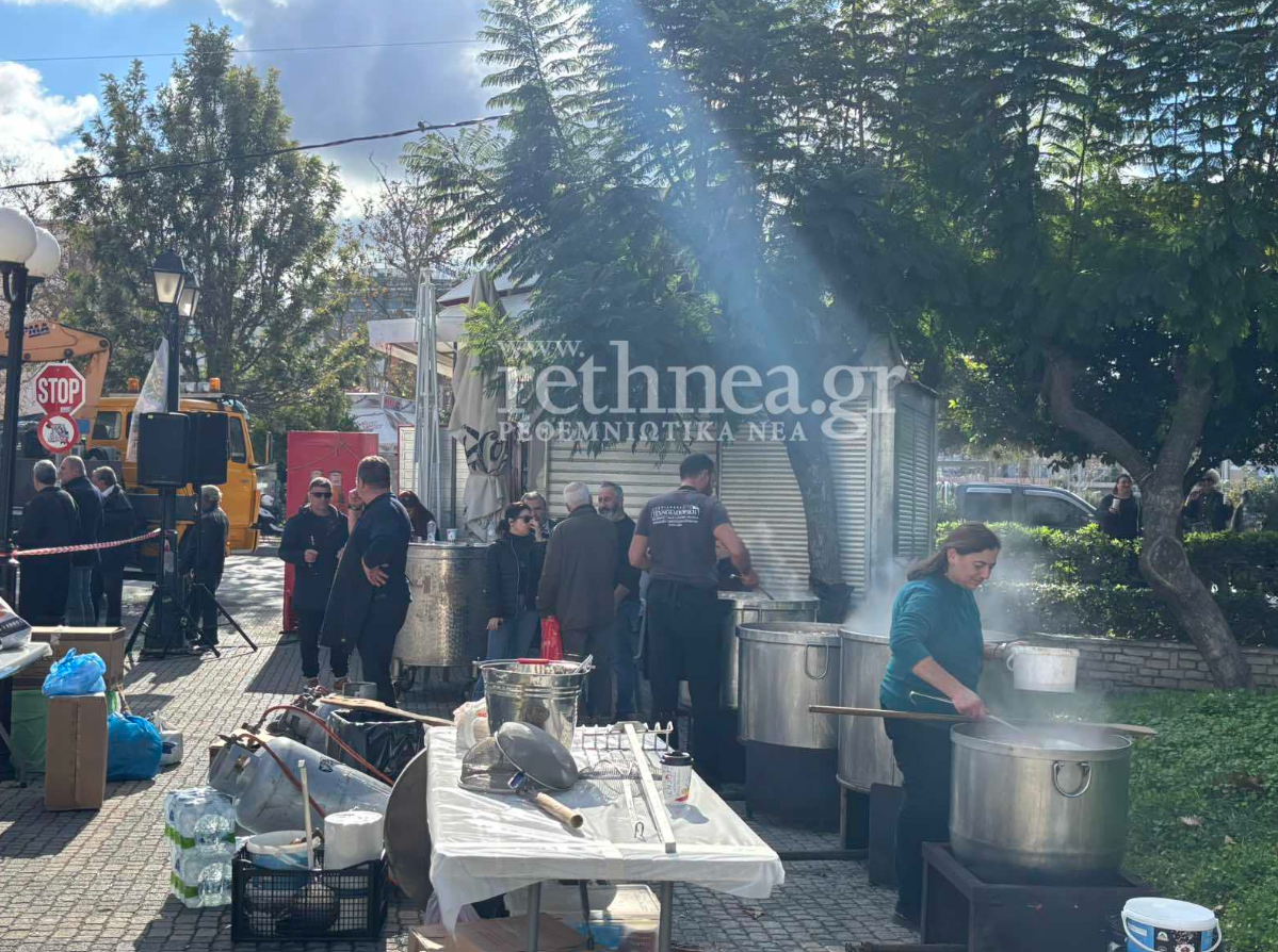 Εκεί έβρασαν κρέας το οποίο μοίρασαν στους περαστικούς, ενώ είχαν ήδη φροντίσει να διαθέσου κρέας για τα συσσίτια της πόλης.