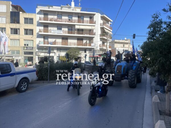 Νέα μηχανοκίνητη πορεία στους δρόμους της πόλης του Ρεθύμνου πραγματοποιούν αυτή την ώρα οι αγρότες.