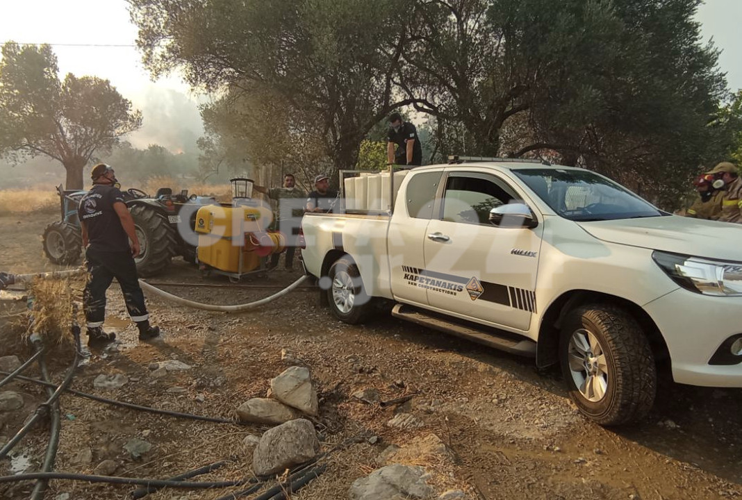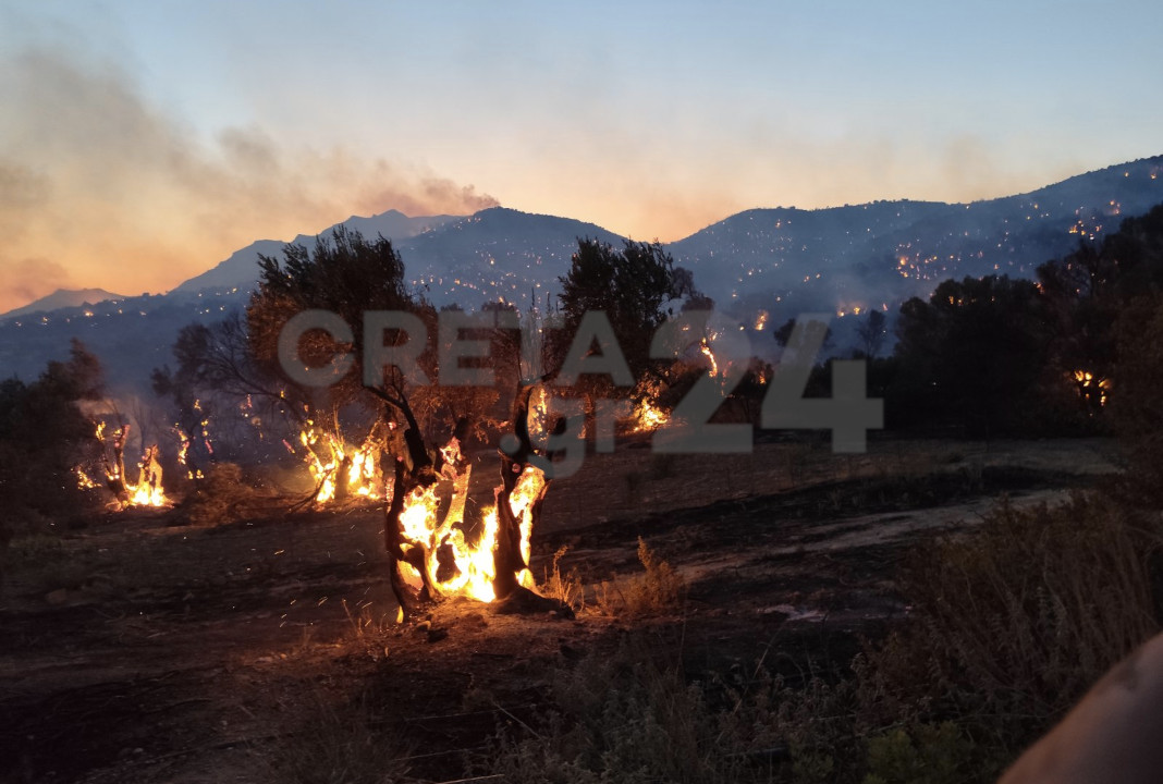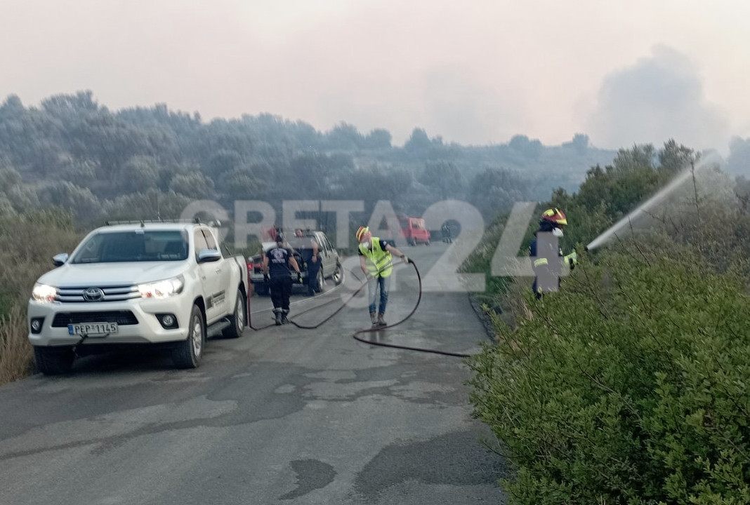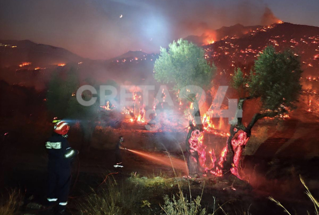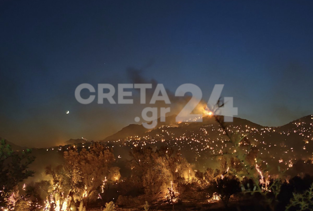 Με το πρώτο φως της ημέρας τέσσερα εναέρια μέσα ξεκίνησαν να πραγματοποιούν και πάλι ρίψεις νερού, ενώ στο σημείο βρίσκονται και επιχειρούν οι 30 δασοκομάντος που έφτασαν στην Κρήτη από την Αθήνα, μετά από απόφαση του Υπουργού Κλιματικής Κρίσης και Πολιτικής Προστασίας Βασίλη Κικίλια.