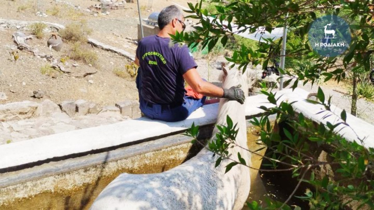 Επιχείρηση διάσωσης ενός αλόγου που είχε πέσει σε στέρνα με νερό, κοντά στο χωριό Λάερμα της Ρόδου, πραγματοποιήθηκε χθες από την Πυροσβεστική Υπηρεσία Ρόδου.